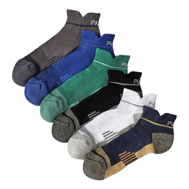 Restock your sock drawer with FWD Men's Performance No Show Socks 6pk. These socks feature seamless toes, pique mesh knit tops and half-cushioned soles for breathable daily wear. Designed with anti-odour, moisture-wicking fabric and reflectivity for visibility, these FWD socks help keep your feet fresh and ensure functionality in a sleek, flat-knit style.