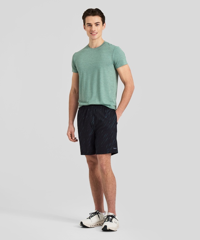 The FWD men's reCarbon 7-inch print woven short combines distinctive print design with innovative carbon capture fabric technology and a convenient pocket system. These flexible, moisture-wicking shorts feature a jacquard waistband, slash front pockets, and a tech pocket, providing unrestricted movement during training sessions, gym workouts, and outdoor activities while making a statement.