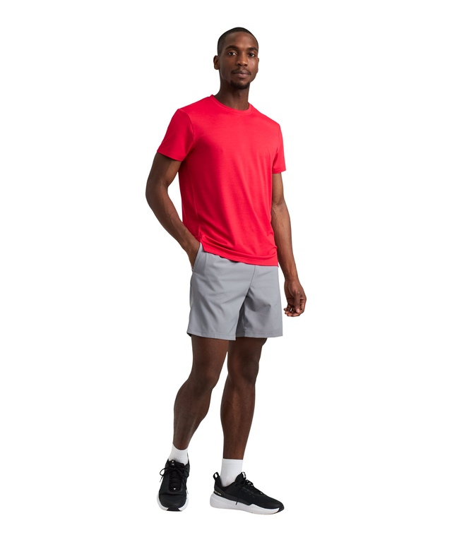 The FWD men's reCarbon 7-inch woven short delivers lightweight performance with innovative carbon capture fabric technology and a convenient pocket system. These flexible, moisture-wicking shorts feature a jacquard waistband, slash front pockets, and a tech pocket, providing unrestricted movement during training sessions, gym workouts, and outdoor activities while supporting sustainable performance.