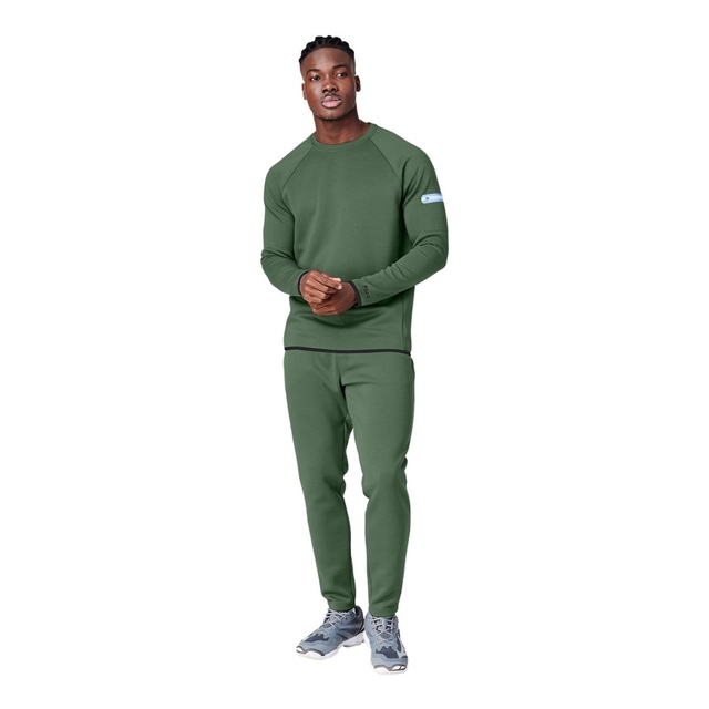Recycled double-knit fabrics provide warmth and enhance mobility