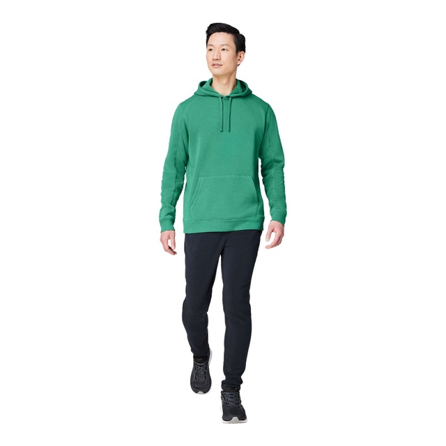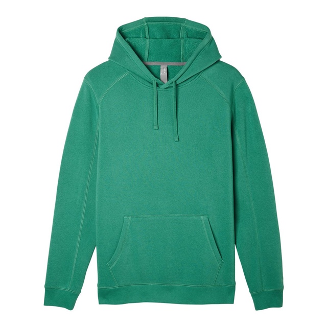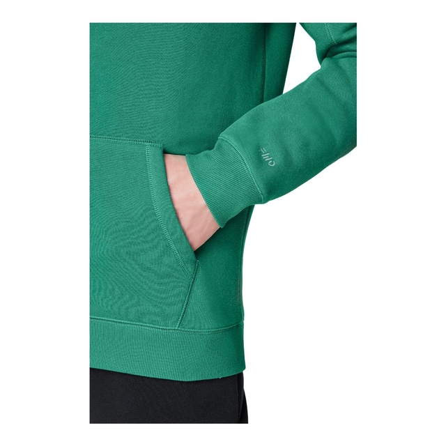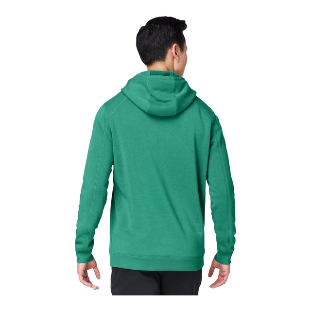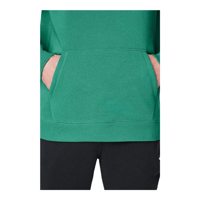 The FWD Men's Sportswear All Year Pullover Hoodie is crafted from sustainably sourced, soft-touch fleece and recycled polyester. This hoodie offers stretchy comfort and functionality with a tech-savvy kangaroo pocket, making it perfect for all seasons.