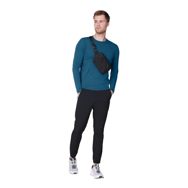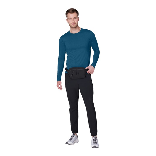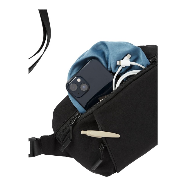 The FWD On The Go Hip Pack offers versatility and sustainability, featuring a 100% recycled polyester lining and a padded neoprene back. It includes removable shoulder and waist straps for versatile carrying options and extra comfort. With a front padded zipper tech pocket and a hidden back zipper pocket for storage, this FWD hip pack is designed to ensure comfort and security for daily essentials.