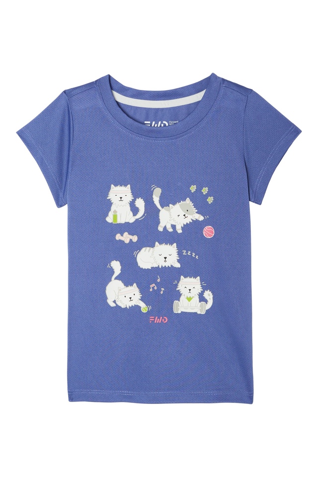 Double the fun with the FWD Toddler Girls' Graphic T Shirt. Made with recycled, breathable materials to keep you drier than your jokes at recess. Whether you're rocking the playground or chilling with friends, this tee keeps you cool and chic!