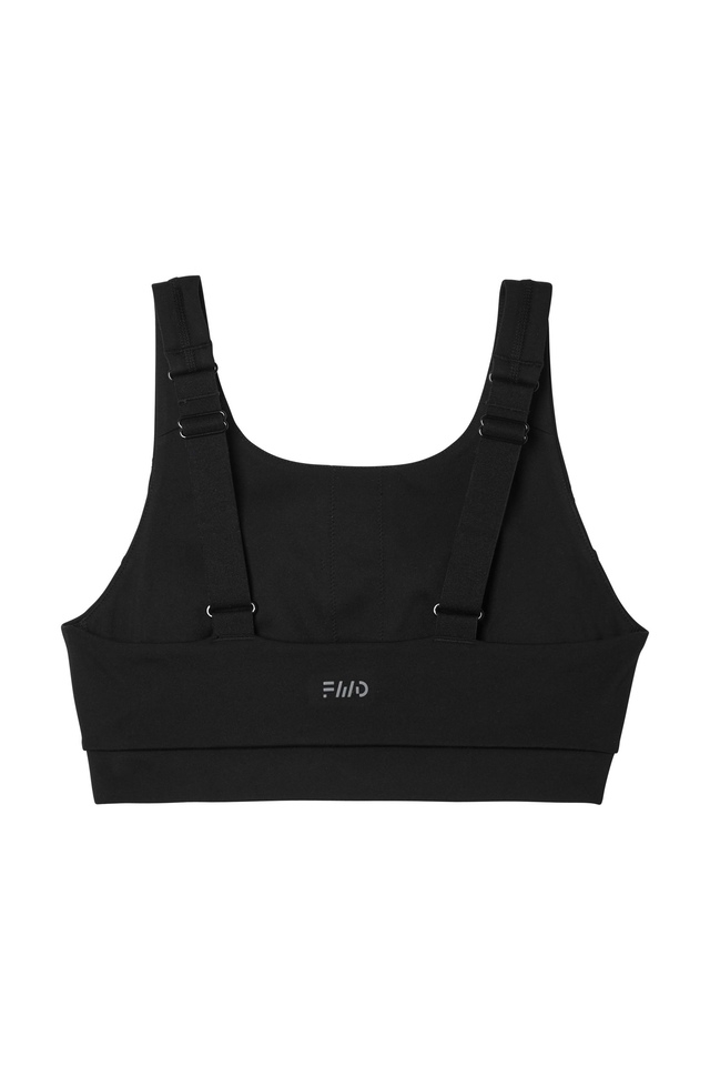 The FWD Women's All Day Medium Impact Sports Bra is made with recycled content for a sustainable touch. Featuring a moisture-wicking finish to keep you dry, this sports bra provides medium impact support. With adjustable straps and breathable, removable bra cups, it ensures a comfortable and customizable fit for all-day wear.