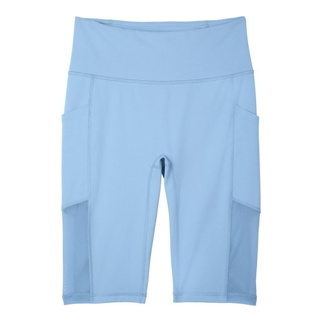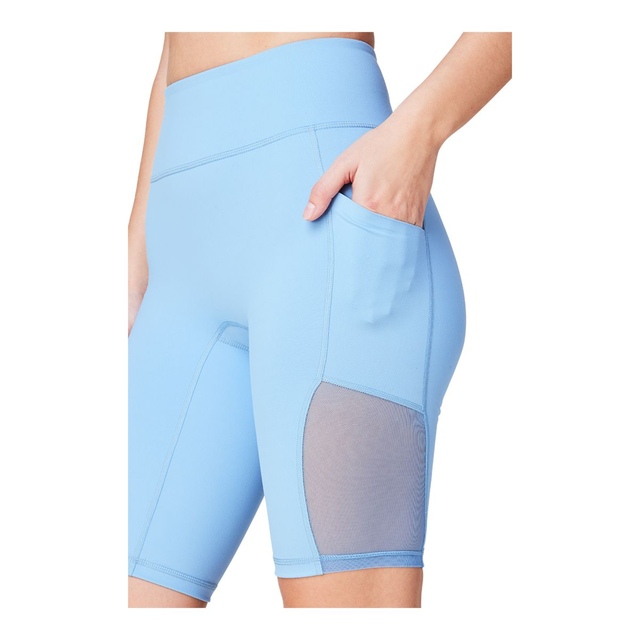 Love them! Long enough to not ride up, have pockets, and high compression waist band so no falling down when running. Length does look a bit funny on my shorter legs (they hit right above my knee) but the functionality of them outweighs any visual downsides. For reference, I’m 5’ 5” and usually wear a size 14 and I got a size large.