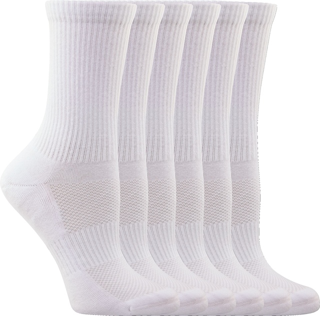 The FWD Women's Athletic Crew Socks are designed for active wear. Their cushioned sole and ribbed arch support provide comfort, and the reinforced toe and heel ensure durability. These athletic socks feature moisture-wicking technology and an odour-resistant finish to help keep your feet fresh and dry.