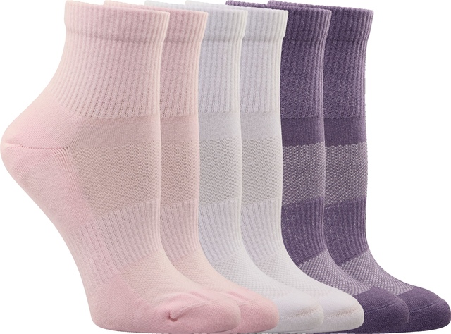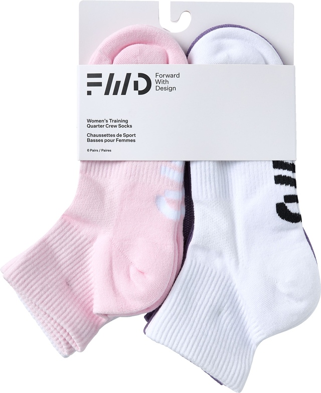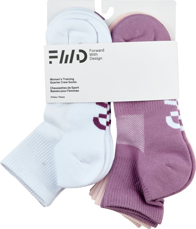 From sweaty workout to sporty style statement, these FWD Women's Athletic Quarter Crew Socks are ready for action. A cushioned sole and ribbed arch support provide long-wearing comfort, while the reinforced toe and heel offer lasting durability. Made for life on the go, the moisture-wicking technology and odor-resistant finish help keep busy feet fresh and dry.