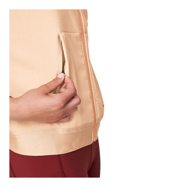 This full zip hoodie is made of cozy sherpa fleece for that extra soft feel. Responsibly constructed with recycled material.