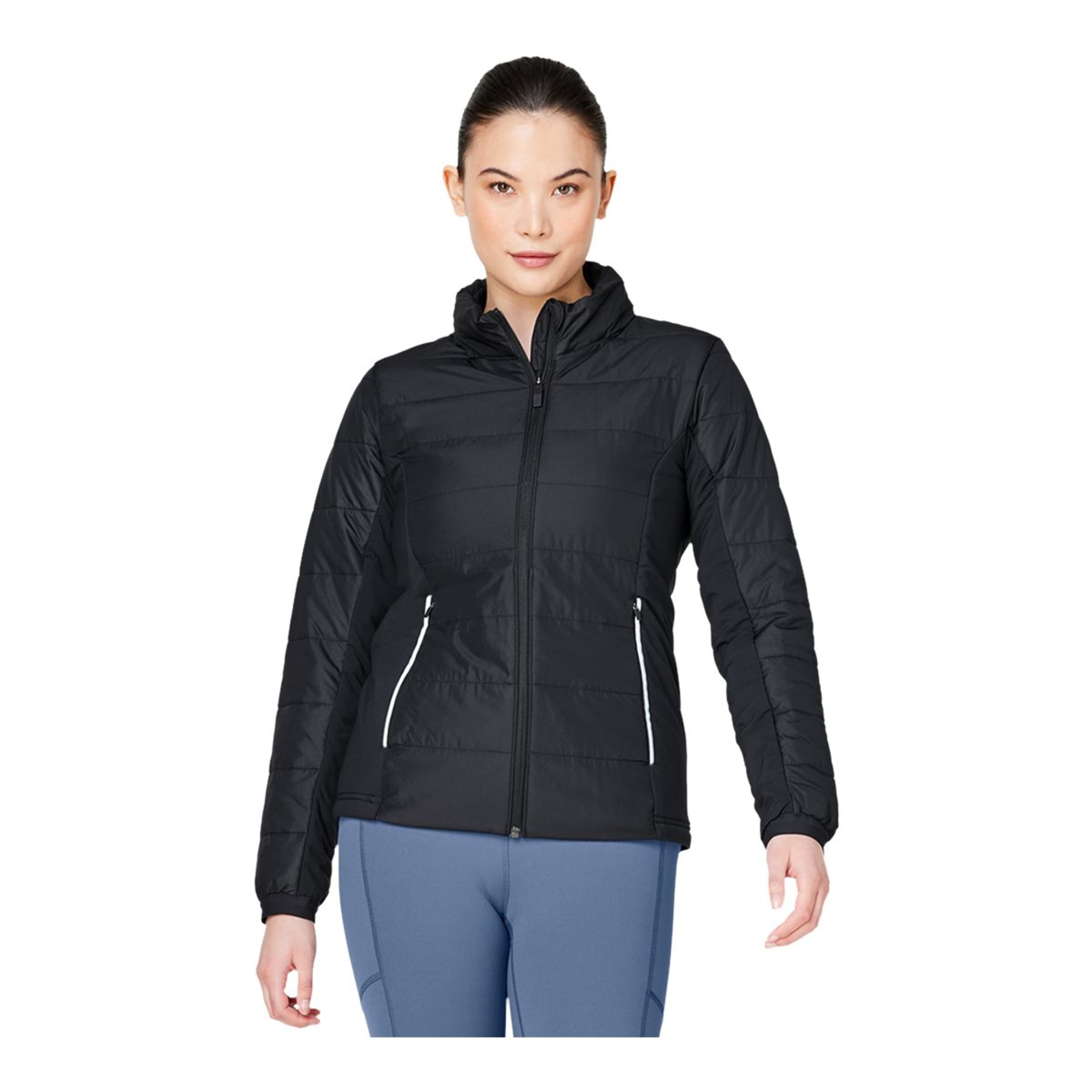 A warm fusion jacket of sustainably constructed PrimaLoft insulation and innovative design. This cold-season staple is a must-have for everyone with an active lifestyle. This winter essential is made from recycled content and is exceptionally practical with a secure back pocket. Get ready for a convenient, adaptable look, and most importantly, keeps you warm with a packable hood. Your late-night, post-work jog will brighten up with reflective high-visual details.