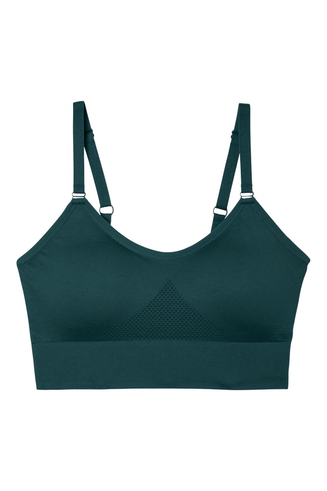 Perfect for low-impact activities, this seamless bra features adjustable straps and removable cups for a soft and comfortable, custom fit. Moisture-wicking technology and an odor-resistant finish help to keep you fresh and dry as you move through your practice.