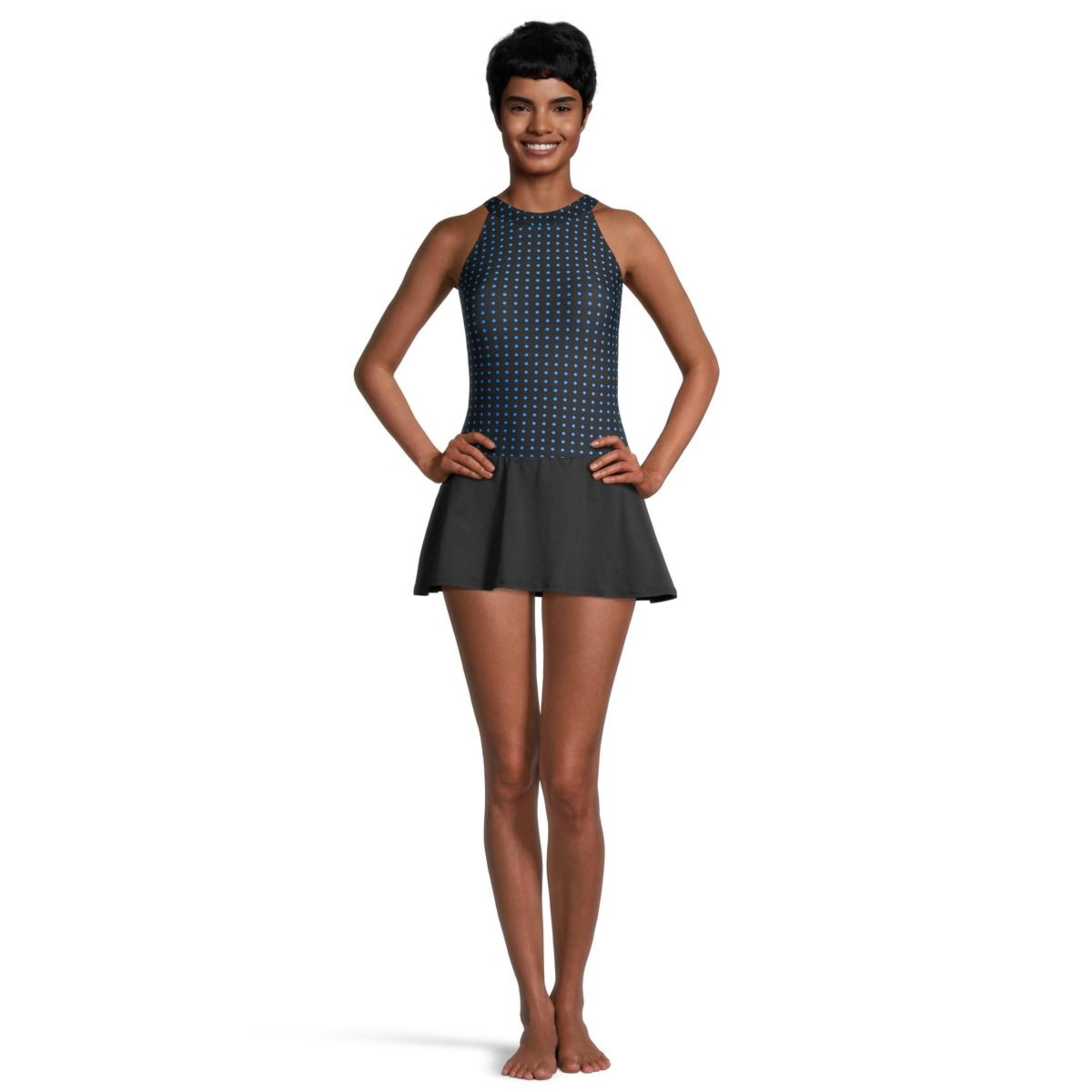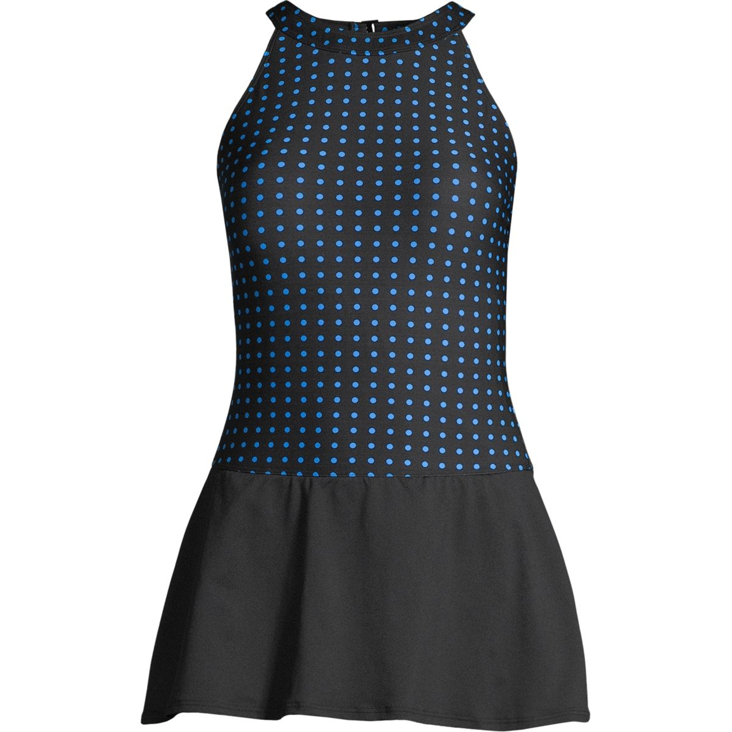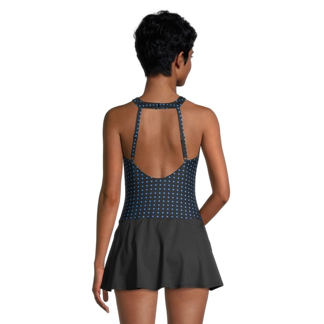 You may be interested in these similar products shown below.The Gabar High Neck Swimdress features classic polka dots in black and white and offers a feminine look that is both supportive and comfortable. The adjustable straps help to make the perfect fit. Gabar's high neckline paired with the flattering tummy control design gives you a confidence-boosting look while the skirted bottom gives you the extra coverage you desire. Gabar's exclusive fully lined Hydrofinity swimsuit fabric is chlorine resistant for 300+ hours of use, breathable and provides UPF 50+ protection.