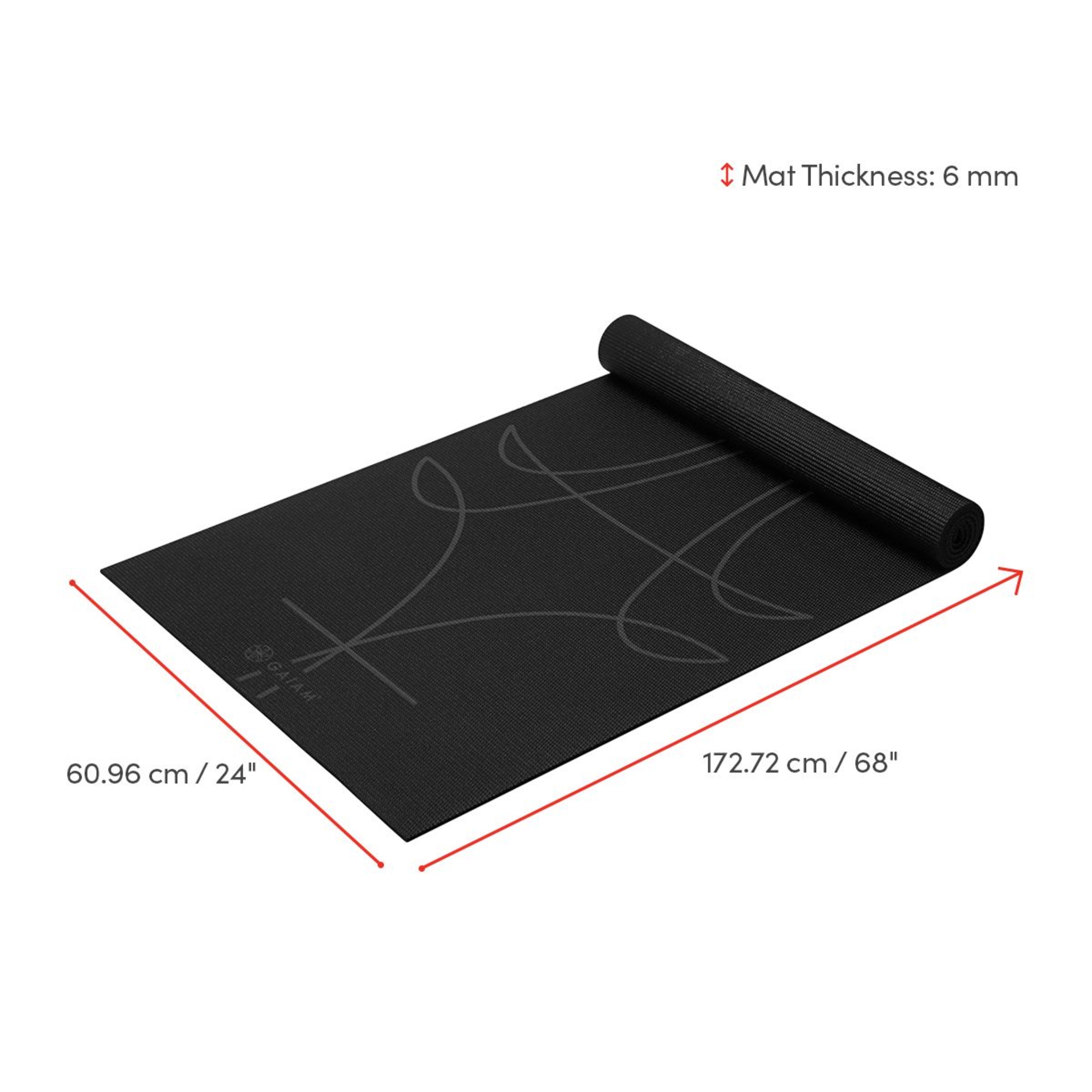 The Gaiam Premium Alignment Lightweight 68" 6mm Yoga Mat provides guidance on the perfect positioning in every pose. This yoga mat features a subtle design that guides hand and foot placements for the perfect alignment, with its grippy surface offering improved stability. Lightweight and portable, this yoga alignment mat is ideal for home or studio use.