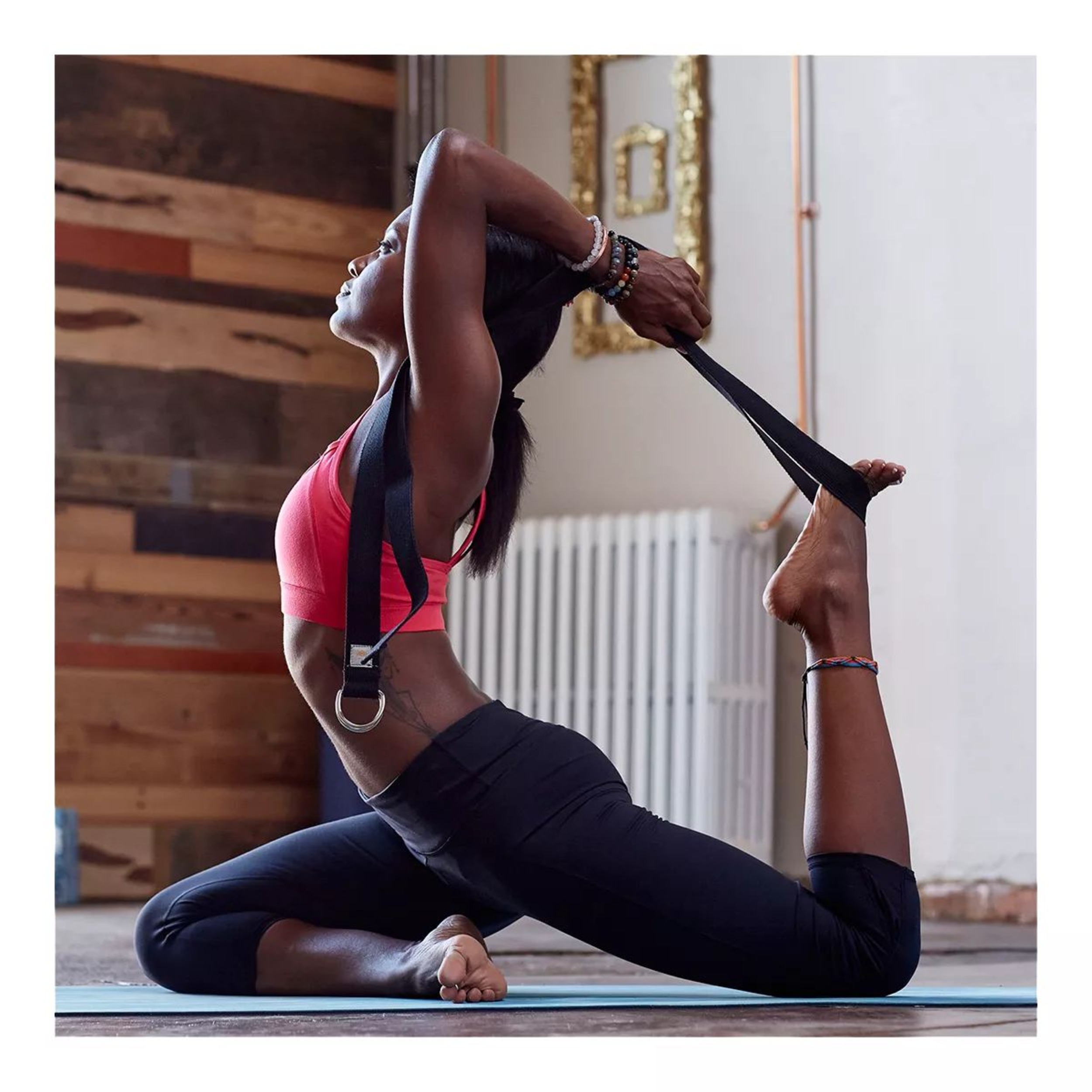 Our Premium Yoga Strap constructed with strong, resilient bamboo fabric for non-stretch support. Features 8 feet of non-slip support with a durable non-slip buckle. This essential accessory helps gently expand your range of motion by making challenging poses safely accessible and gradually contributing to greater overall flexibility.