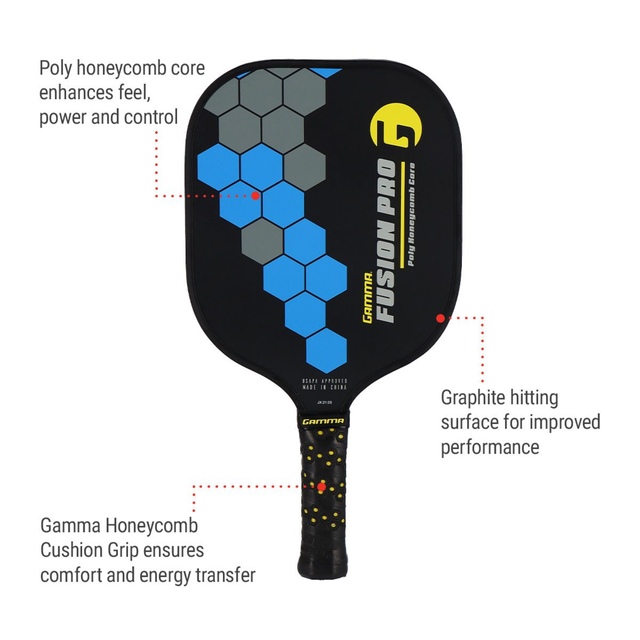 The Gamma Fusion Pro Pickleball Paddle is designed with the latest technology to provide peak performance. Its poly honeycomb core offers superior feel, power, and control, while the signature Gamma Honeycomb Cushion Grip ensures comfort and maximum energy transfer during play. Perfect for players of all abilities.