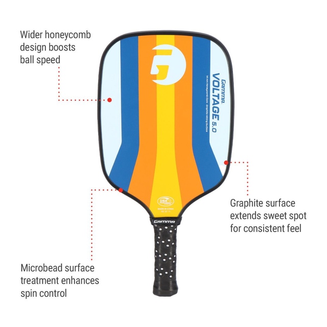 Elevate your game with the Precision Crafted Gamma Senior Voltage 5.0 Pickleball Paddle. This Gamma pickleball paddle is the premier choice for players who love an intense play style and plenty of spin on each shot. The Voltage head of this pickleball paddle is optimized to prevent drag, allowing you the speed to react to every move from your opponents without sacrificing power. It delivers your most critical deep-court shots, leaving your opponents chasing the ball.