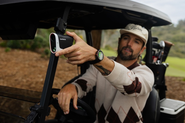Range relay feature sends the ranged distance to your paired compatible Garmin device or the Garmin Golf™ smartphone app