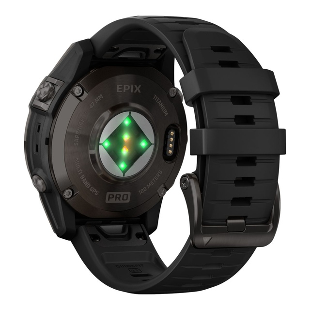 Support your fitness goals with the Garmin Epix Pro 2 Sapphire 47mm Smartwatch. It features a vibrant 1.3" scratch-resistant sapphire AMOLED display and a robust fibre-reinforced polymer case. A multi-band GNSS with SatIQ™ ensures precise positioning, while preloaded maps enhance navigation. Enjoy up to 16 days of battery life, encased in a stylish carbon grey DLC titanium bezel with a black band. This Garmin smartwatch meets US military standards for durability.