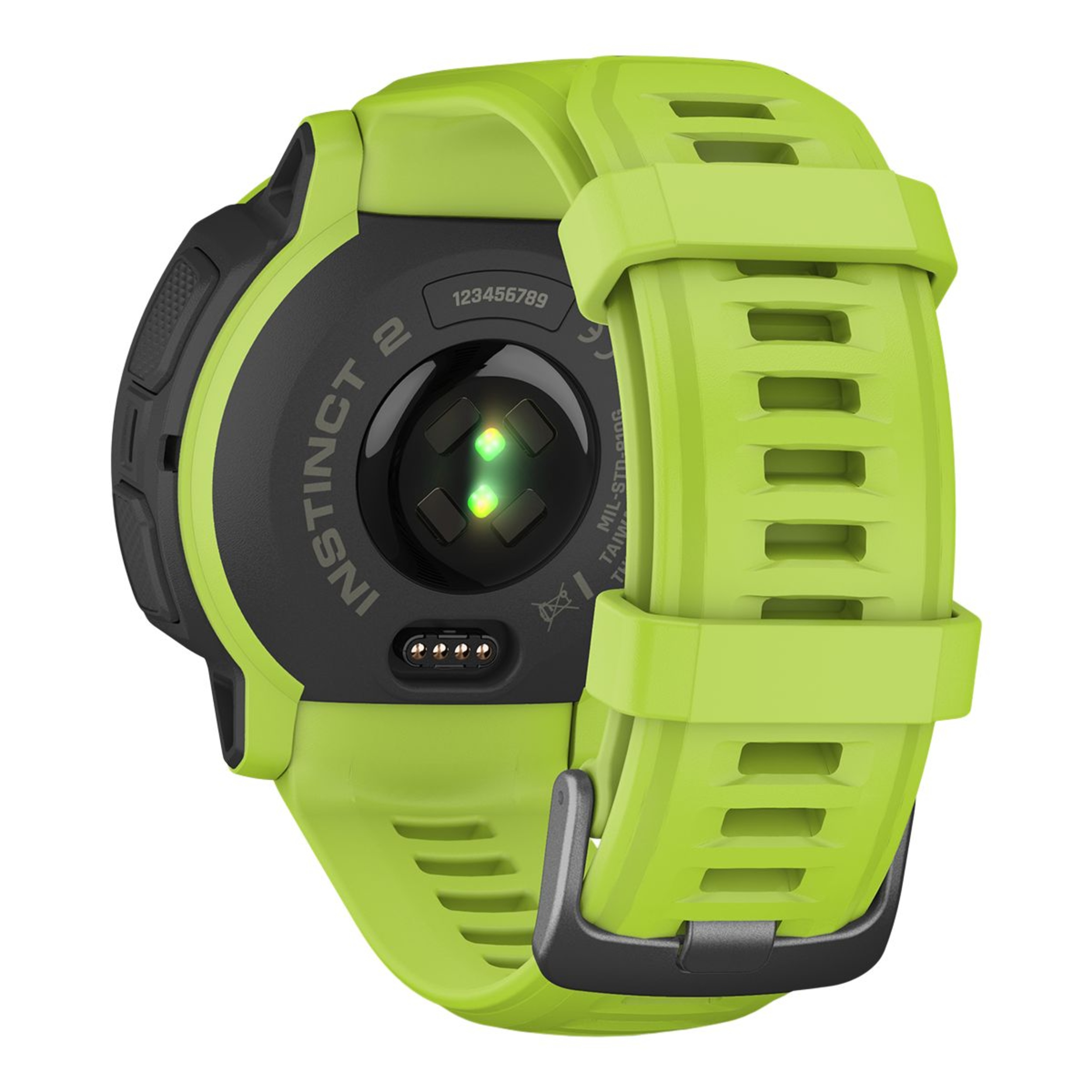 The Garmin Instinct® 2 Standard Edition Fitness Watch is engineered for rugged outdoor adventures with its durable fiber-reinforced polymer case and chemically strengthened glass. This fitness tracker monitors essential health metrics like heart rate, stress levels, sleep quality, and energy reserves with Garmin's Body Battery™.