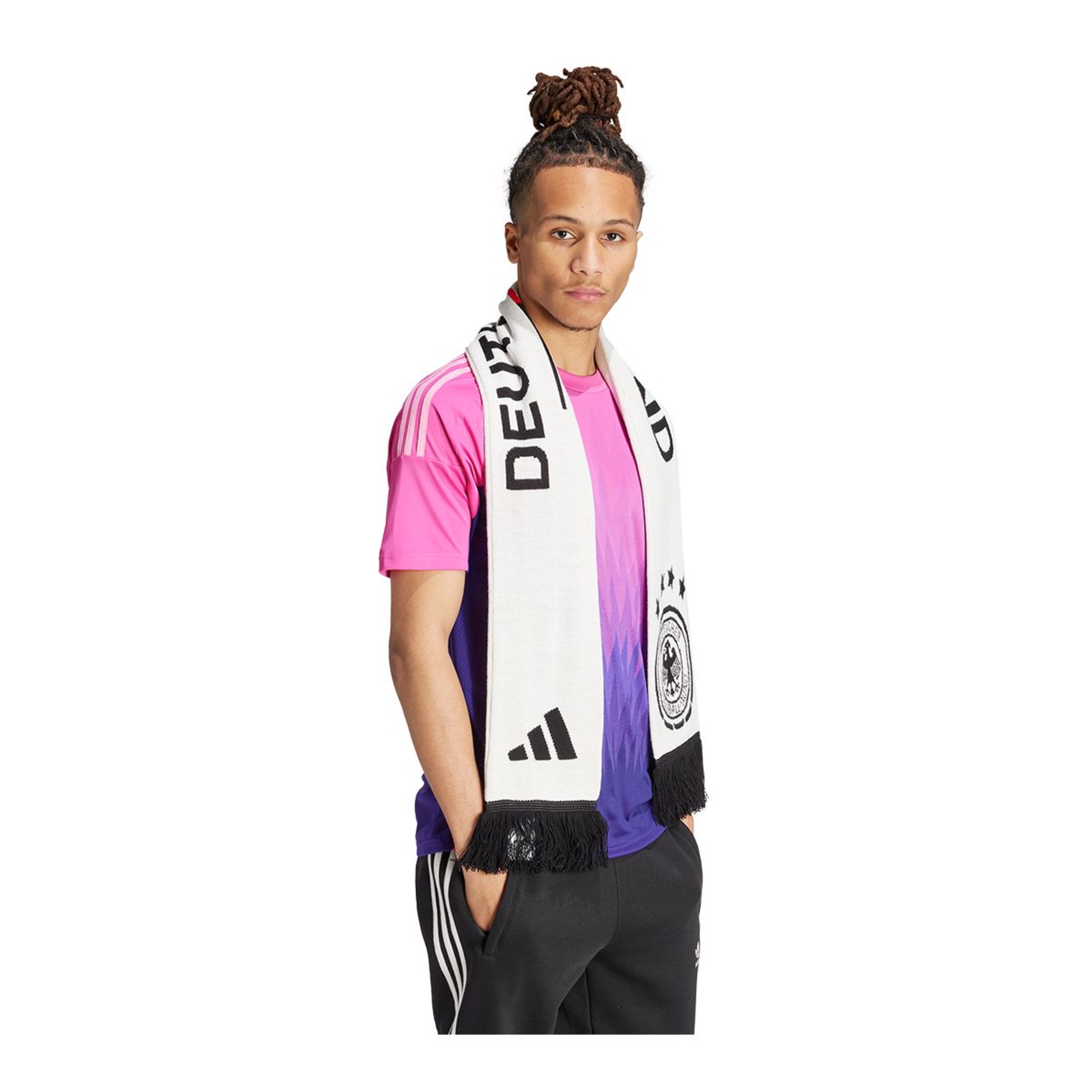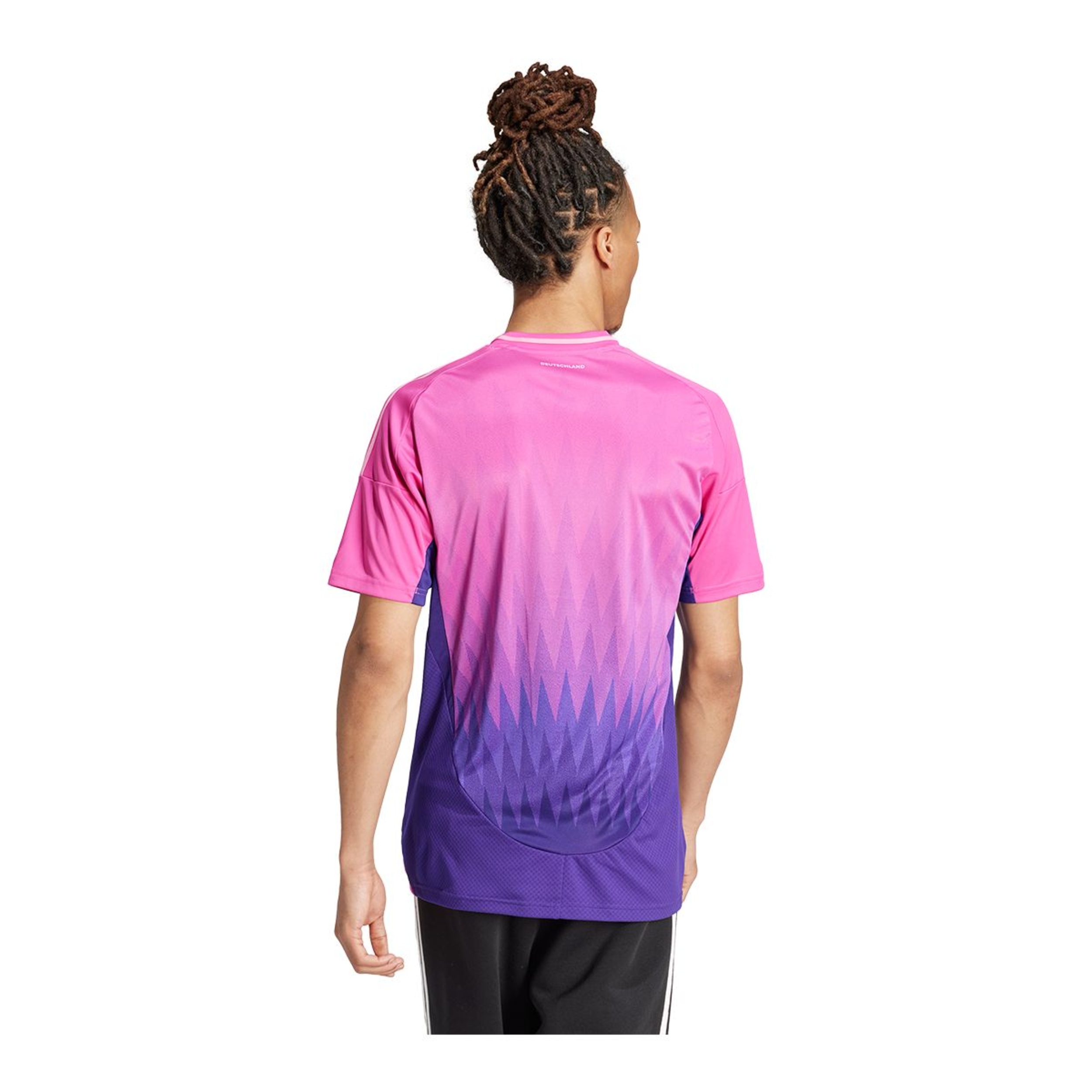 Traditional soccer fandom highlighted in a brand-new way. Finished in vibrant purples and blues, an eagle feather-inspired design rises up the chest of this adidas Germany away jersey. Moisture-managing AEROREADY and a premium woven team badge combine to make this the perfect shirt for comfortable support. This product is made with 100% recycled materials. By reusing materials that have already been created, adidas helps to reduce waste and their reliance on finite resources and reduce the footprint of the products they make.