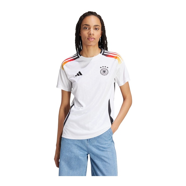 Show your support for Germany in this women's jersey. It's made with moisture-managing AEROREADY to keep you feeling dry and comfortable. It features the same design as what players will wear on the pitch in 2024, so you can show your pride with a true sisterhood of soccer vibes.