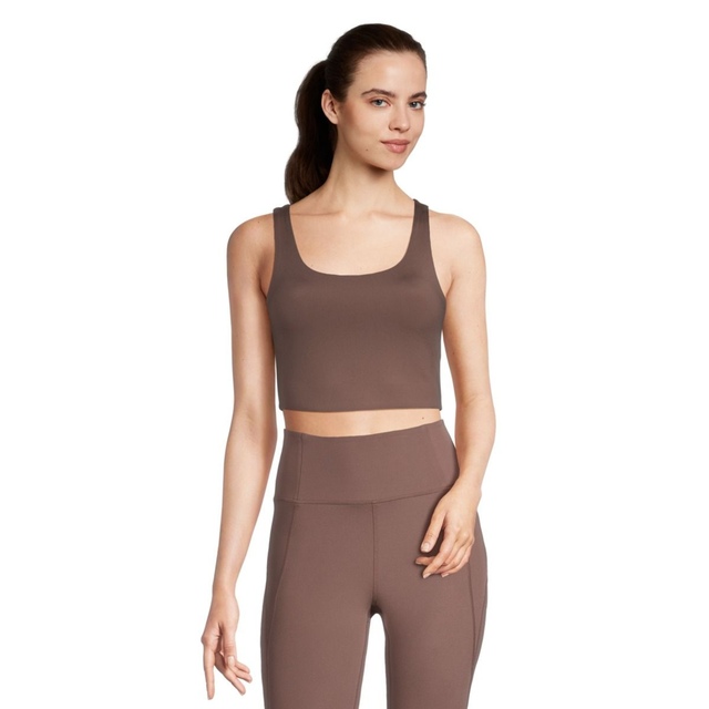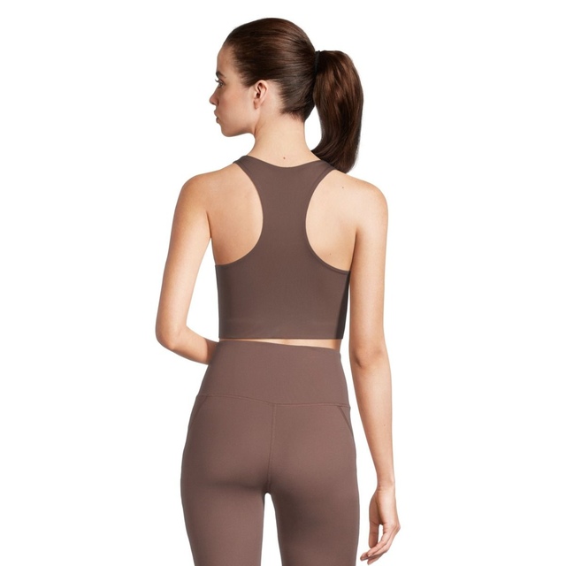Features a racerback and scoop neck that provides full coverage.