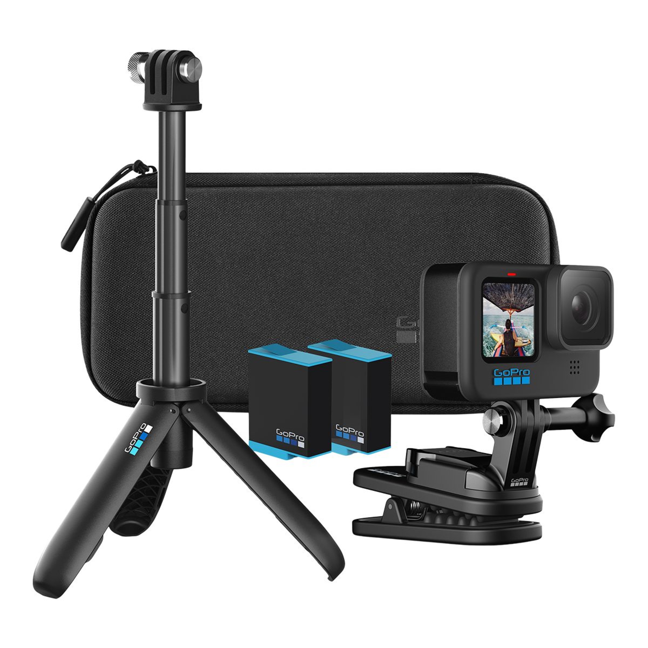 Bundle includes GoPro HERO10 Black, Shorty tripod, Magnetic Swivel Clip, camera case, 2 rechargeable batteries, adhesive mounts, and USB-C cable