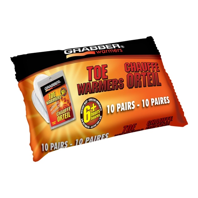 Keep your toes warm and cozy with Grabber® Portable Toe Warmers. Offering over six hours of natural, air-activated warmth, these non-toxic, environmentally safe warmers are designed with adhesive on one side to ensure they stay in place. Safe and effective, this convenient 10pk of Grabber® toe warmers provide consistent heat to keep your toes comfy in chilly conditions.