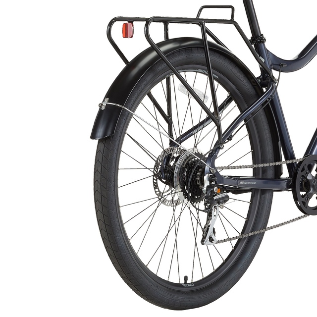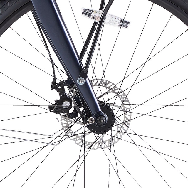 The lightweight yet sturdy 6061 T6 aluminum frame with an upright geometry provides a comfortable, easy-to-control riding position
