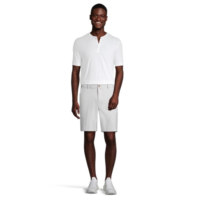 The Classic Stretch Short is 90% Polyester and 10% Spandex with four-way stretch. This lightweight 10 inch inseam short is the perfect performance short for warm weather golf or for just casual wear during the summer.