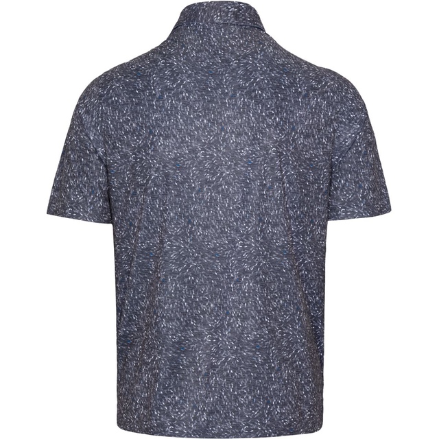 The Greg Norman Golf Men's Shark Frenzy Print Polo offers comfort and style on and off the course. Built with PLAY DRY® moisture-wicking technology, it keeps you cool and dry. The standout shark frenzy print and Shark logo on the chest add a bold touch, while UPF 50+ provides sun protection for long days outdoors. Made from 100% polyester for a lightweight feel.
