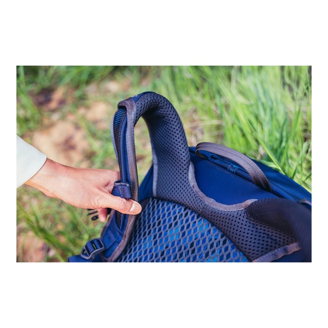 Breathable mesh shoulder straps distribute weight comfortably during long hikes