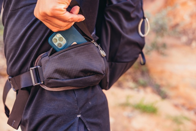Comfort cradle hip belt with zippered pockets ensures seamless fit without hotspots