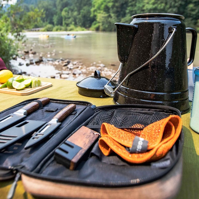 The GSI Camp Large Dish Cloth is a two-sided cleaning tool perfect for camping and outdoor adventures. The microfiber side effectively scrubs away stuck-on food from your cookware, while the soft side gently dries dishes. Made from quick-drying microfiber, this GSI dishcloth is a must-have for keeping things clean after meals outdoors.