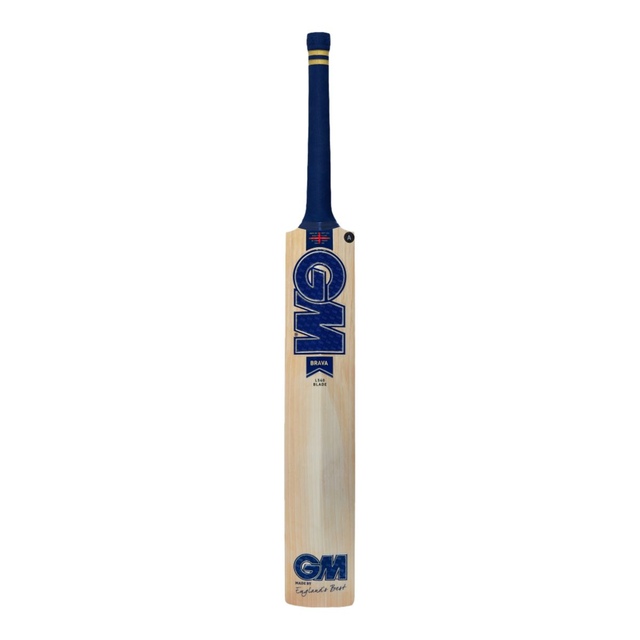 The F2 Face Profile and low swell position on the Brava L555 DXM have been designed and engineered for batters looking to dominate on the front foot. With huge, meaty edges at the driving zone and bold, powerful profile, the batter can ooze confidence at the crease. The brave, fearless blade is offset with classy navy and gold GM labels to complete the package. The Brava features Gunn & Moore's renowned Pro-Lite grip, which is GM's lightest ever grip and ensures a balance between grip and feel. Made in England from Prime English Willow, and is available in Short Handle only.