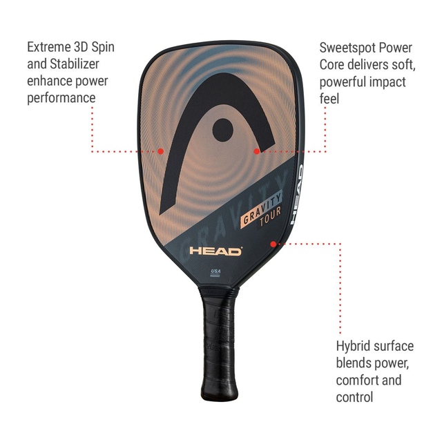 Elevate your game with the Head F24 Gravity Tour Senior Pickleball Paddle. Featuring an innovative design, this racquet boasts a massive sweet spot that delivers the power you crave while ensuring a softer impact feel for ultimate comfort.