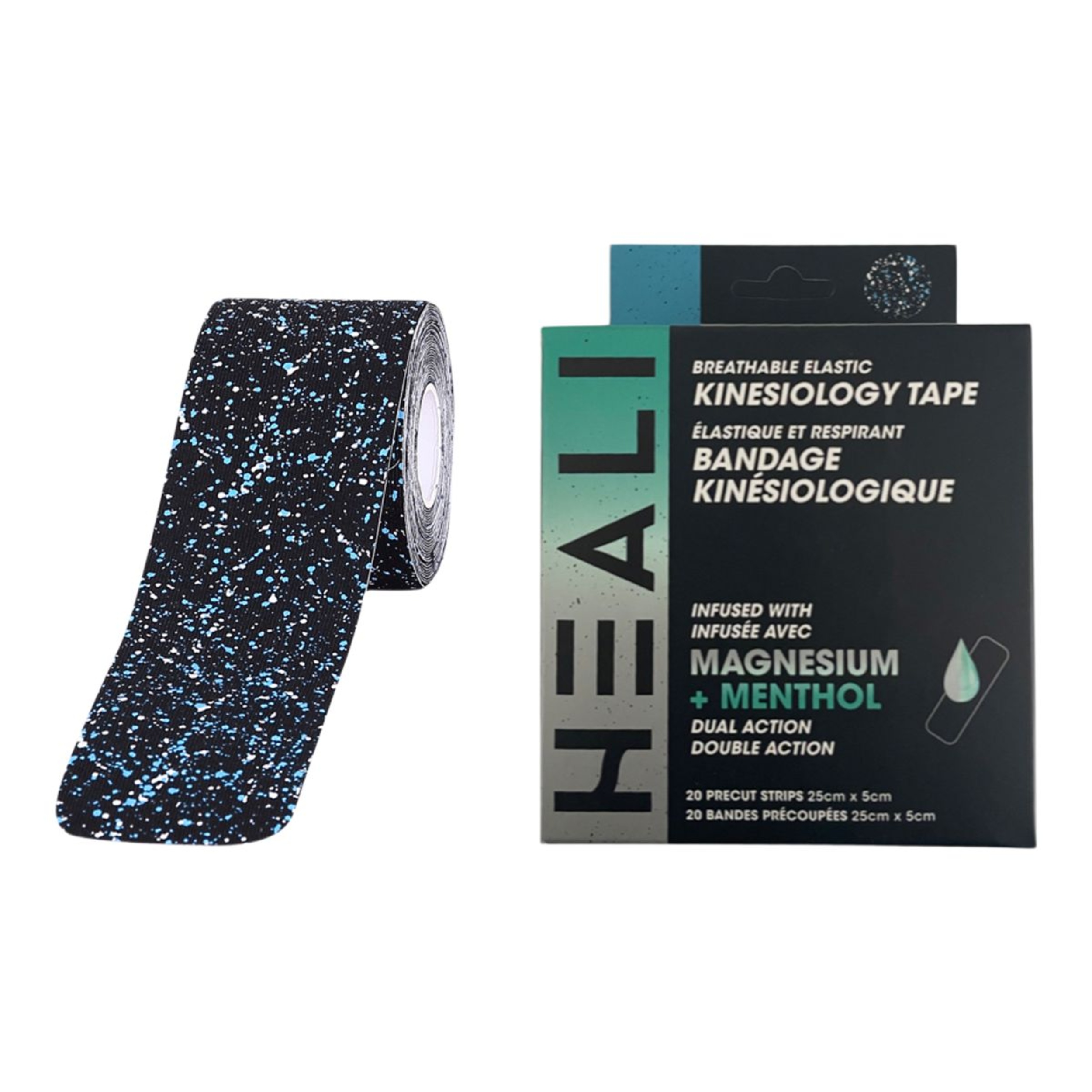 Heali Precut Kinesiology Tape Infused with Magnesium & Menthol - Roll - 20 Strips - 2" x 10" (5cm x 25cm) - Synthetic Silk, Latex Free, Strong Adhesive to Last 4-7 Days -Splatter Paint Design