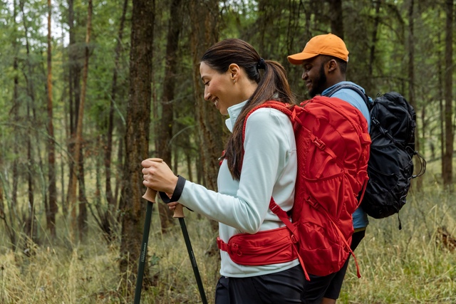 Adjustable sternum strap with whistle ensures a comfortable fit