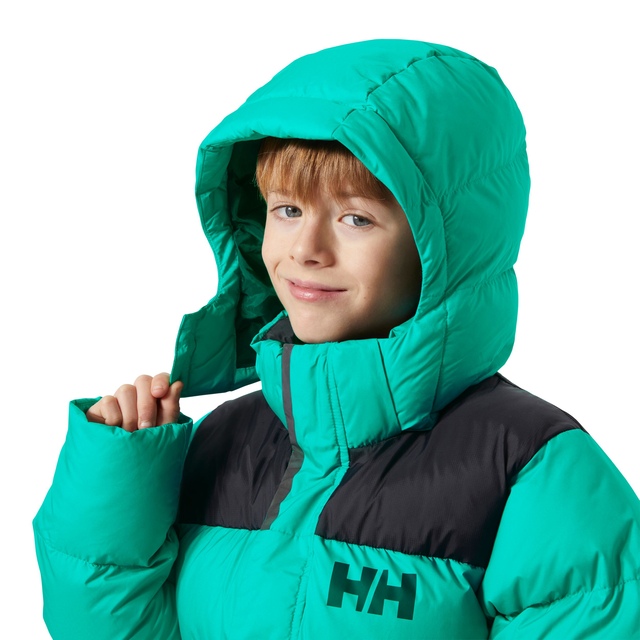 The Helly Hansen Junior Boys' Specter Puffy Jacket is designed to provide reliable warmth and protection with durable synthetic insulation and water-repellent fabric. Crafted from tough ripstop material, it stands up to everyday wear, while elastic cuffs and hem ensure a secure fit. Made with a detachable hood and cargo pockets for convenience, plus reflective details to enhance safety in low light.