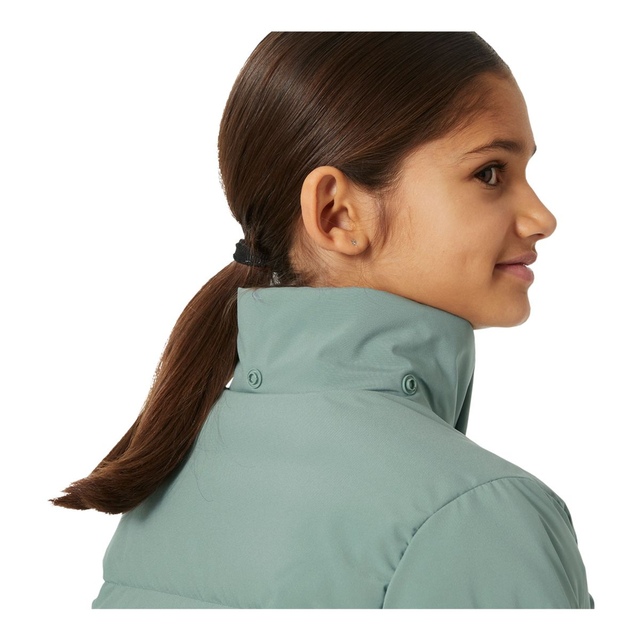 The Helly Hansen Juniors' Nora Short Puffy Ski Jacket blends performance and urban style with lightweight synthetic blowable insulation for warmth. Equipped with RECCO® reflectors for added safety, this jacket also features brushed-lined hand pockets, a ski pass pocket, and a detachable hood. The adjustable powder skirt, elastic cuffs, and hem ensure a snug fit, while its use of recycled materials adds an eco-friendly touch.