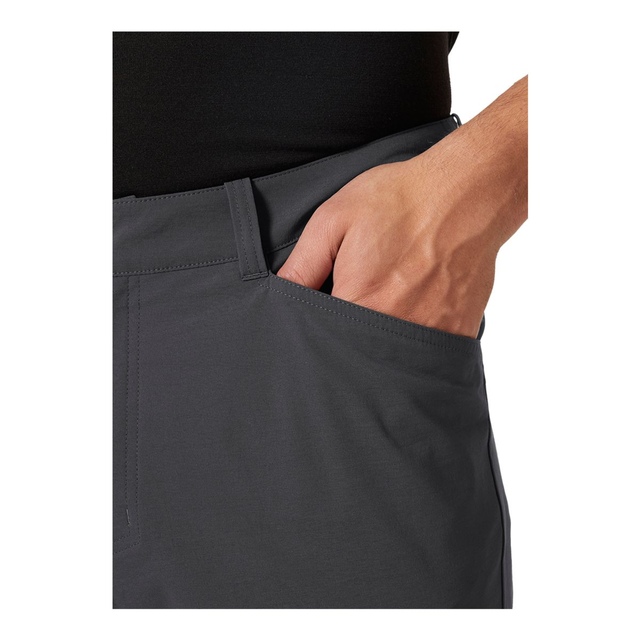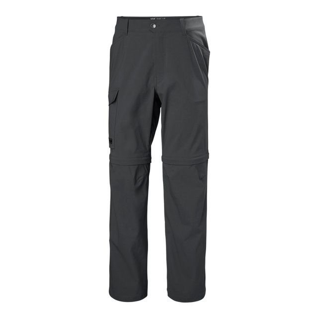 The Helly Hansen Men's Elv Zip Off Pants adapt to changing conditions with a versatile convertible design from pants to shorts. The two-way stretch construction and articulated knees enhance mobility during outdoor activities. These pants are made with recycled materials and feature adjustable bottom hems and multiple pockets, including a secure zippered thigh compartment for essential storage.