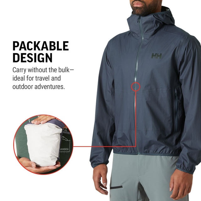 The Helly Hansen Men's Fastpack 2.5 Layer Jacket offers waterproof and breathable protection for outdoor activities. The Helly Tech® Performance technology wicks away moisture to keep you dry. Its 2-way stretch fabric allows for easy movement. This jacket is packable, fitting into its hand pocket for convenience. It includes a protective hood, two zippered hand pockets, and breathable mesh fabric. With bluesign® certification and PFC-free construction, this eco-friendly winter jacket is perfect for your adventures.