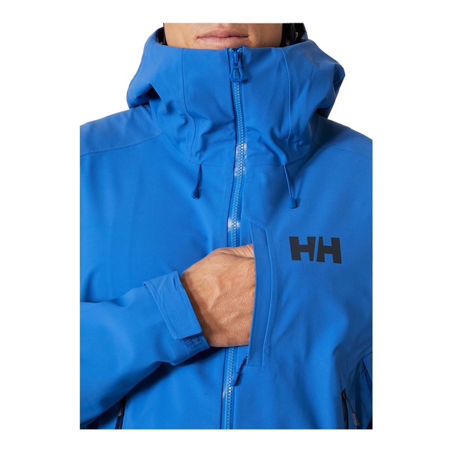 The Helly Hansen Men's Verglas Backcountry Jacket is an all-weather outerwear made from wind and water-resistant fabric. It features articulated sleeves, a helmet-compatible hood, a 2-way stretch design, and a high protective collar for enhanced mobility and coverage. With multiple pockets and compatibility with ski pass resorts, this Verglas jacket is excellent for hiking and skiing in the backcountry.