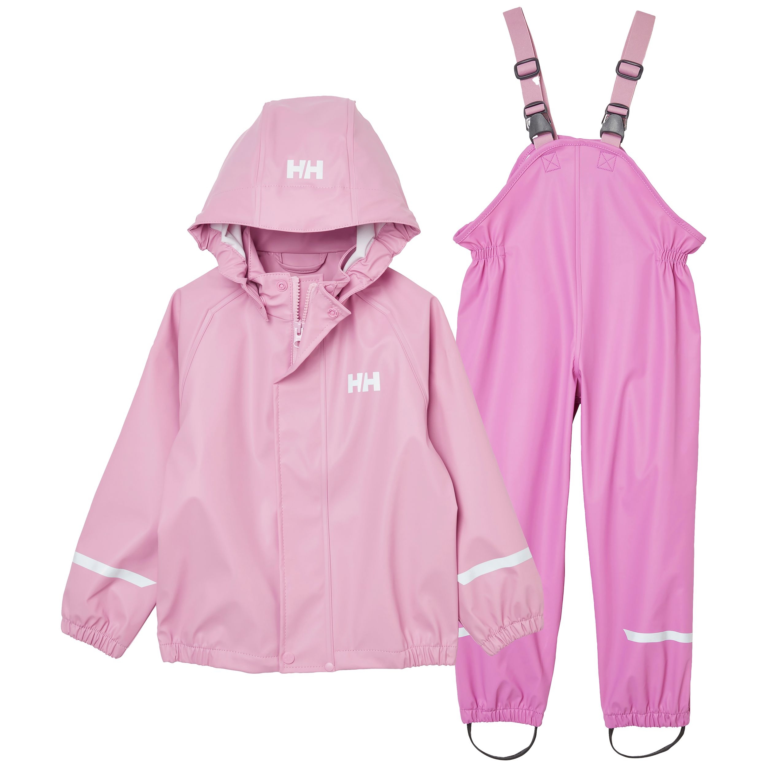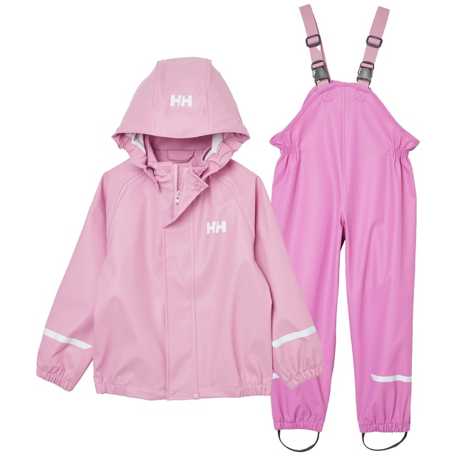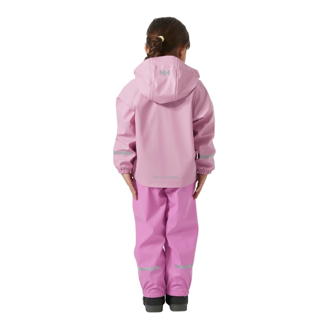 The Helly Hansen Toddler Girls' Bergen PU Rainset is perfect for playful, rainy days. Featuring a jacket and bib overalls in vibrant, fun colours, this rain set uses Helly Hansen's Helox+ fabric technology to keep kids dry and comfortable. Waterproof and stretchy for easy movement, it includes a detachable hood, elastic bootstraps, reflective elements, and a quick-dry lining for added convenience.