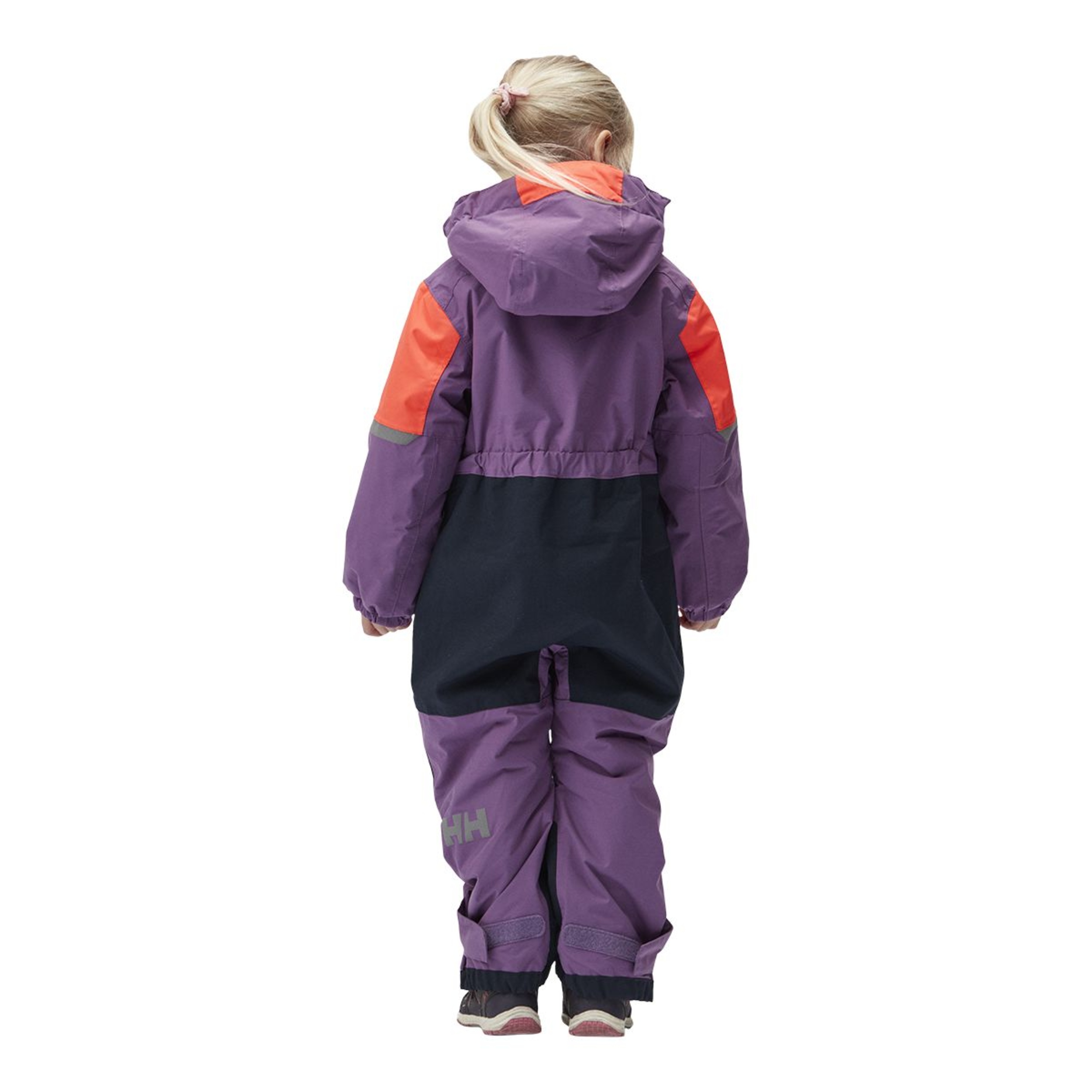 This fully weatherproof, insulated snow suit enables kids to get outside and stay outside in deep winter. Our trusted HELLY TECH® Performance 2-layer fabric system is waterproof/breathable and windproof. With the planet in mind, we used light and warm PrimaLoft® BLACK Eco insulation made from 100% recycled content. Because young adventurers play hard, the seat, knees and bottom hems are reinforced to maximize multi-season use. Additional features include high visibility elements and reflectives for visibility in low light.