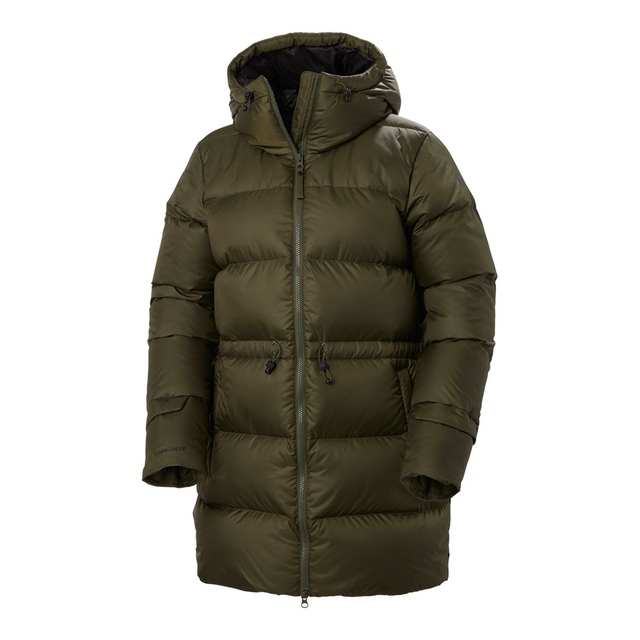 This warm Helly Hansen Women's Essence Down Parka has performance at the core and aesthetics in mind. The women’s Essence Down Parka features 600 fill power down. With an adjustable hood and waist, you can keep cold drafts out and maintain a nice silhouette. This jacket is a certified bluesign® product. It also features smart details like fold-up reflectives for safety on city streets.
