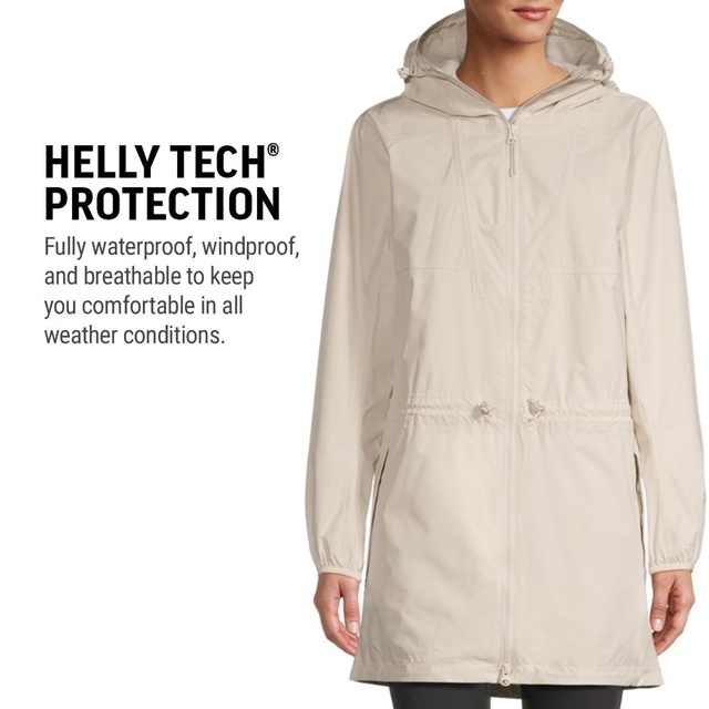 The Helly Hansen Women's Essence Mid-Length Raincoat offers the waterproof, windproof and breathable protection of HELLY TECH® technology. With a stylish silhouette, it's made from a lightweight fabric with a soft lining for added comfort. The fit is customizable using drawcords at the waist and hem and there's a breathable vent at the back.