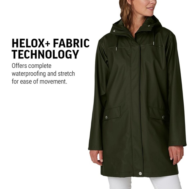 Inspired by the 1950s fisherman's raincoat, this Helly Hansen Women's Moss Rain Jacket combines timeless style with modern features. Made with a waterproof shell, full-front zipper and welded seams, this jacket is designed to keep you comfortable and dry in wet weather. The 100% recycled polyester insulation keeps you warm while the windproof back yoke provides breathability. An attached hood with a drawcord and chin guard keeps your head warm and dry, and the front pockets feature welded buttoned flaps. With a repair kit for easy fixes, the Helly Hansen rain jacket is a great option for functionality and durability in all weather conditions.