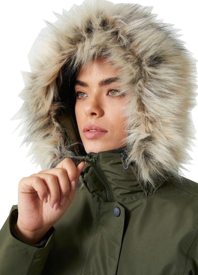 The Helly Hansen Women's Senja Winter Parka combines fashion and function for cold-weather wear. HELLY TECH® Protection makes this parka waterproof, breathable and windproof to help keep the elements at bay. Its lightweight synthetic insulation mimics down, while the detachable faux-fur hood adds warmth. An adjustable waist ensures a versatile custom fit.