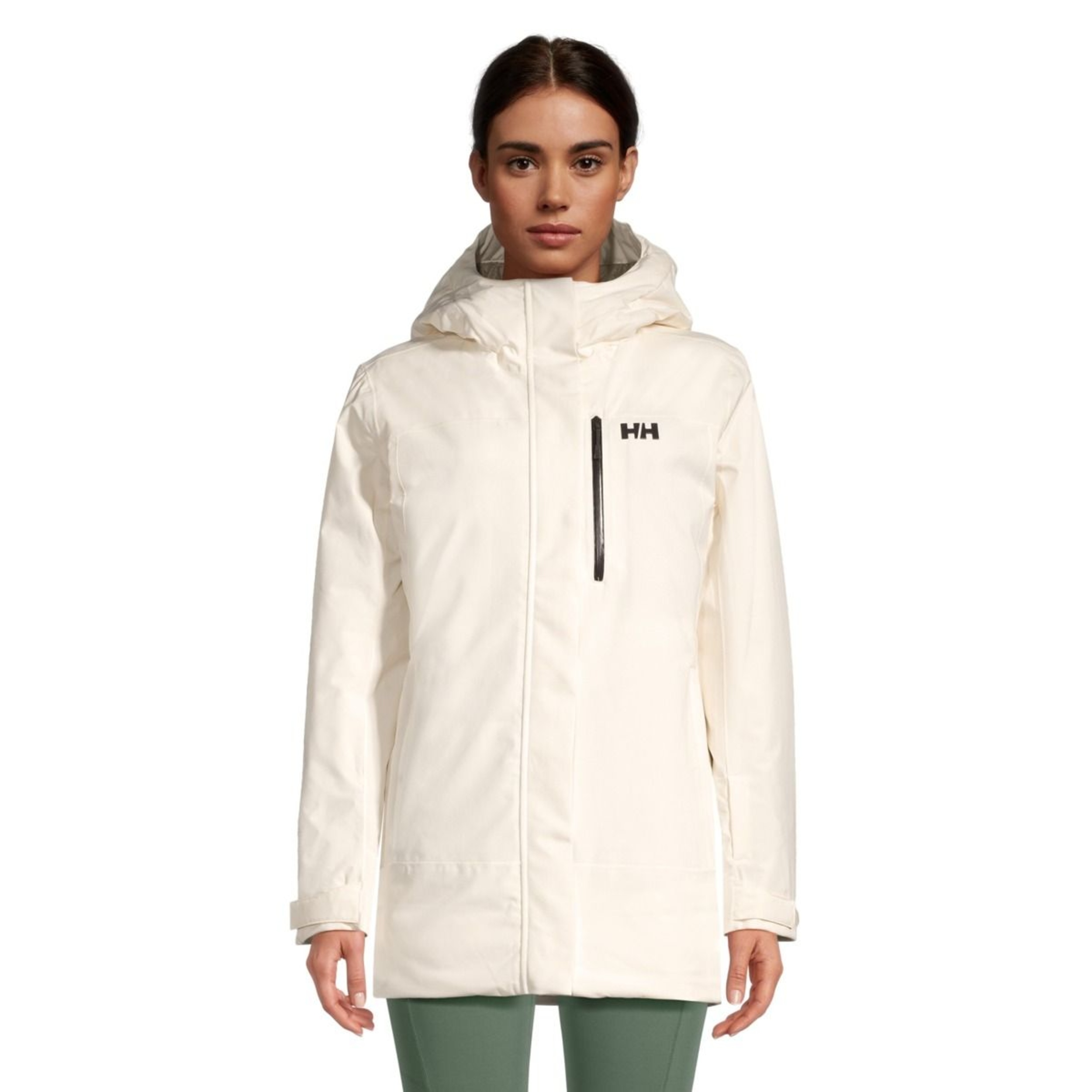 With its longer length, Helly Hansen Women's Snowplay Long Insulated Ski Jacket is great for both the slopes and everyday wear. Crafted with blown insulation and quick-drying recycled PrimaLoft® insulation, it’s built for warmth, while side ventilation zips offer breathability. Helly Hansen’s HELLY TECH® Performance technology ensures the jacket is waterproof and breathable. This ski jacket features RECCO® reflectors for searchability, a high collar of extra warmth, an adjustable powderskirt, and a handy chest pocket with a waterproof zipper. Plus, the dual fabrics offer depth and texture for versatile use. This is a certified bluesign® product.