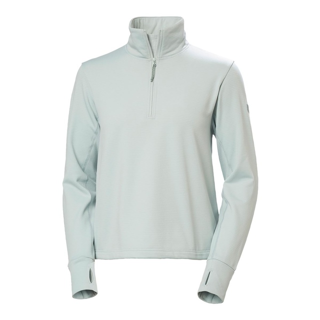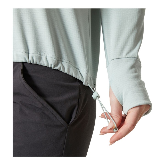 The Helly Hansen Women's Versalite Cinched Pullover Top is crafted using fleece fabric. It features an adjustable waistline for a custom fit. The soft fabric collar, high neck, and thumb holes offer warmth and coverage. The half zip design allows easy on and off, and the drawcord at the hem lets you cinch the waist for a personalized fit. This women's top is sustainably crafted, with bluesign® certification and recycled materials, making it an eco-friendly choice for your activewear collection.